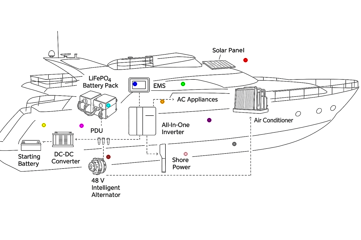 Engineered for harsh marine environments with certified, high-efficiency DC systems and automotive-grade components.